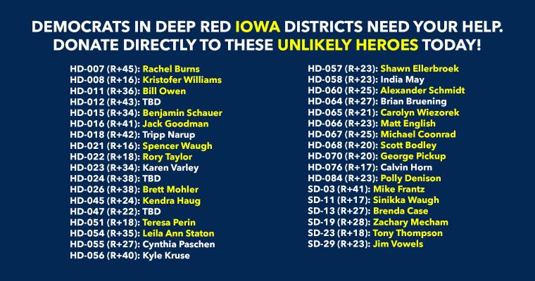 Donate to Democrats running in deep red districts to boost turnout & force Republicans to defend their turf!