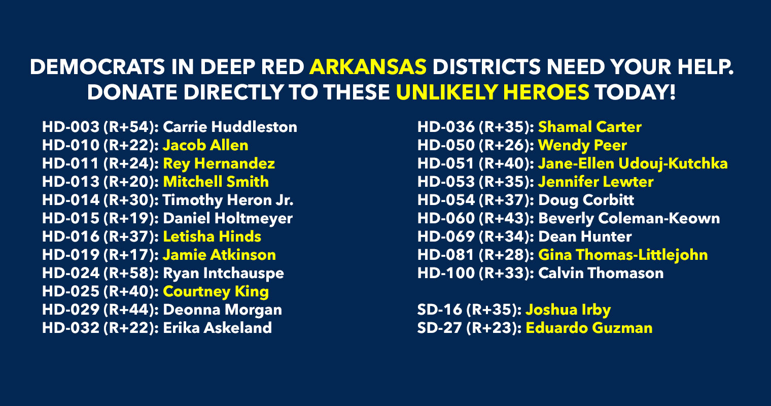 Donate to Democrats running in deep red districts to boost turnout & force Republicans to defend their turf!