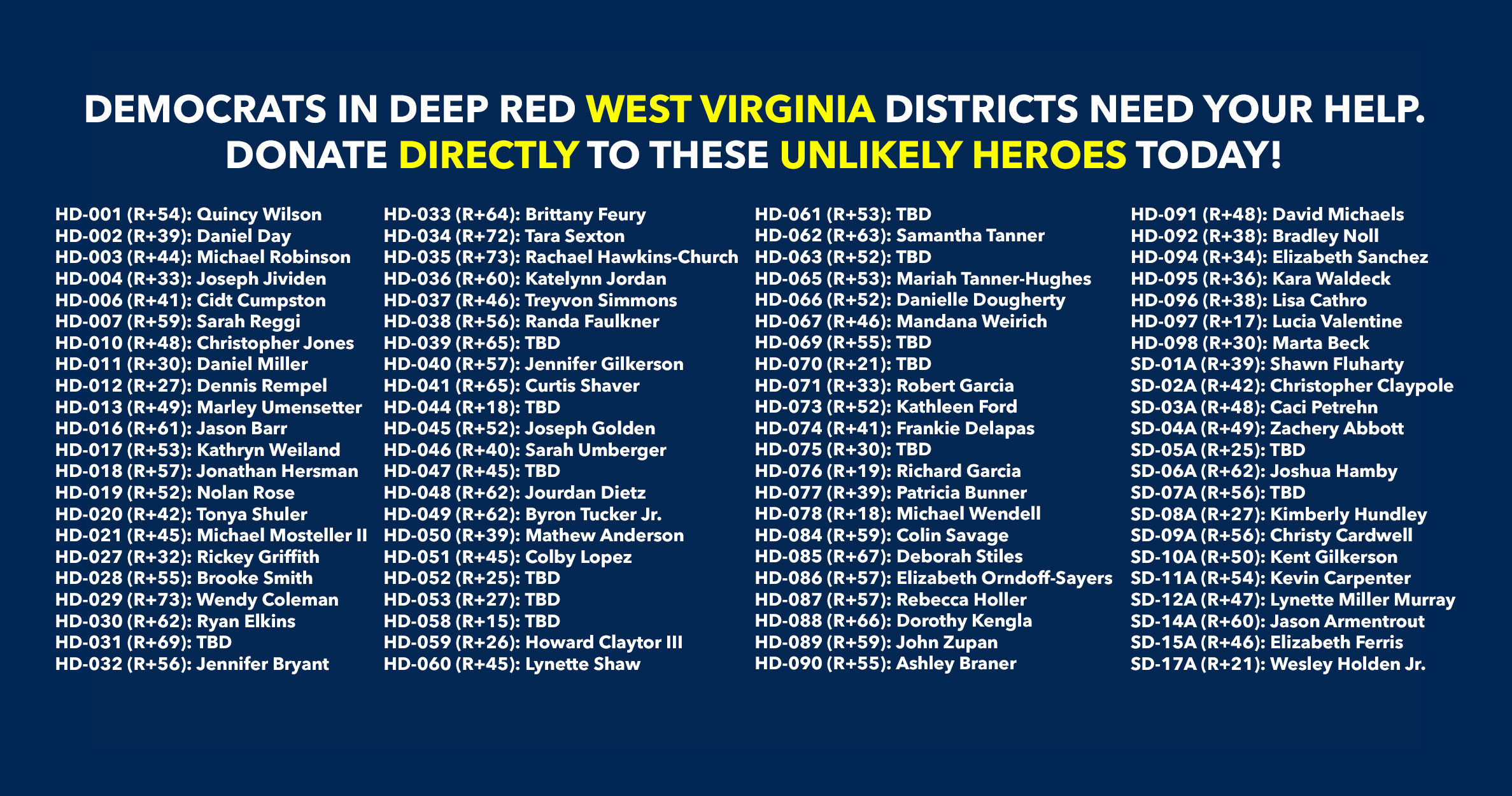 Donate to Democratic candidates running in competitive districts to keep & flip as many seats blue as possible!