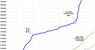 Besides the normal ramping up as we approach Election Day 2025 that you'd normally expect, by far the biggest boost in September came from launching the strategic "Virginia Value Pack" page of Democrats running in deep red districts in late August. This page alone has generated nearly $120,000 for state legislative Dems, $114,000 of which was raised in September...nearly 60% of the total for the month.