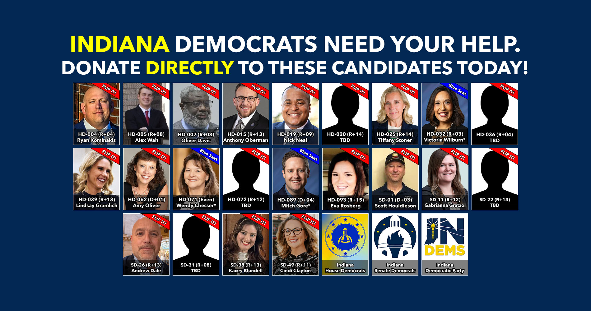 Donate to Democratic candidates running in competitive districts to keep & flip as many seats blue as possible!