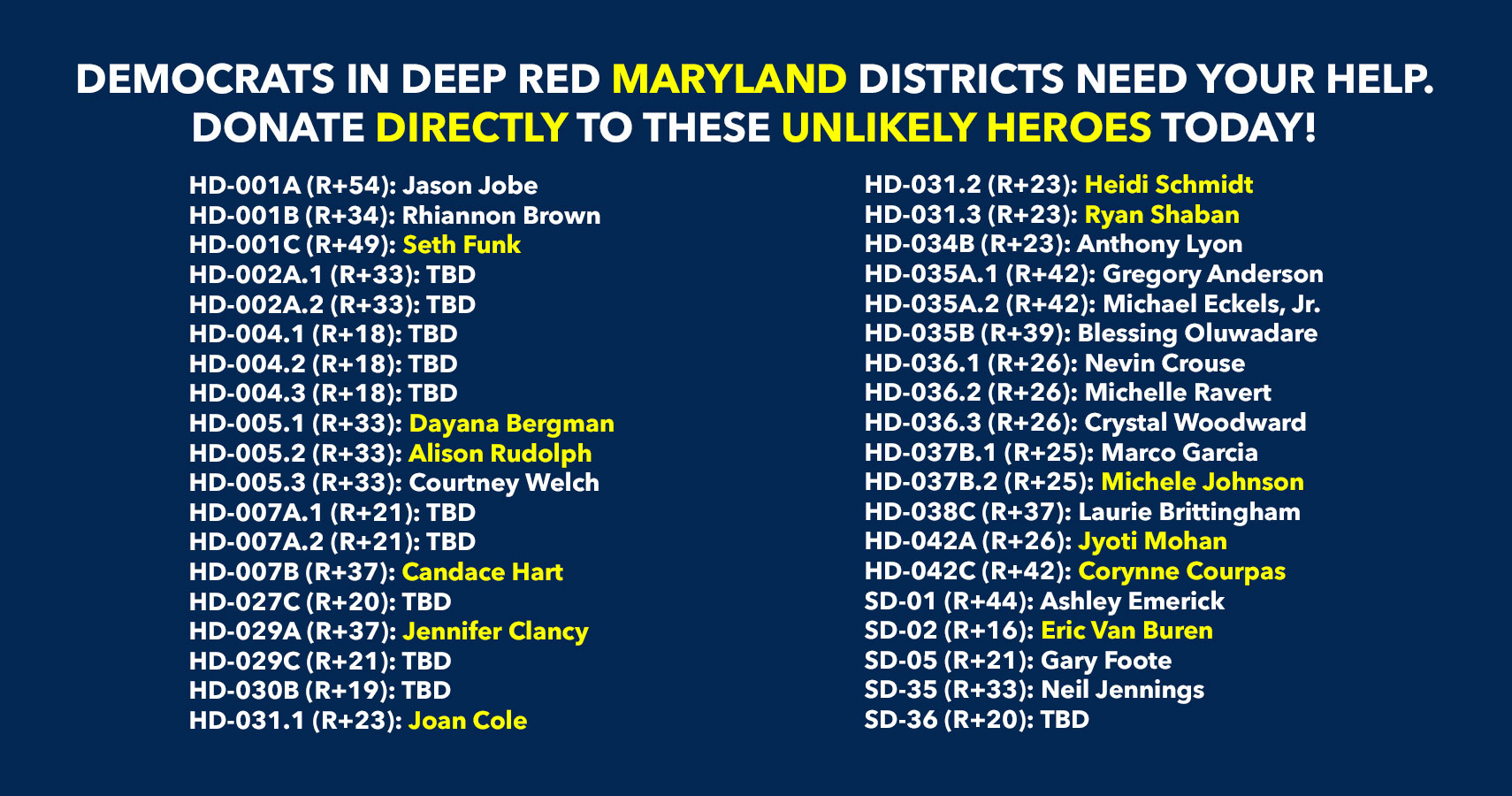 Donate to Democratic candidates running in competitive districts to keep & flip as many seats blue as possible!