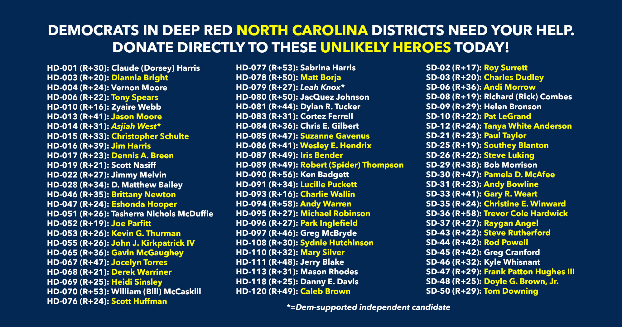 Donate to Democrats running in deep red districts to boost turnout & force Republicans to defend their turf!