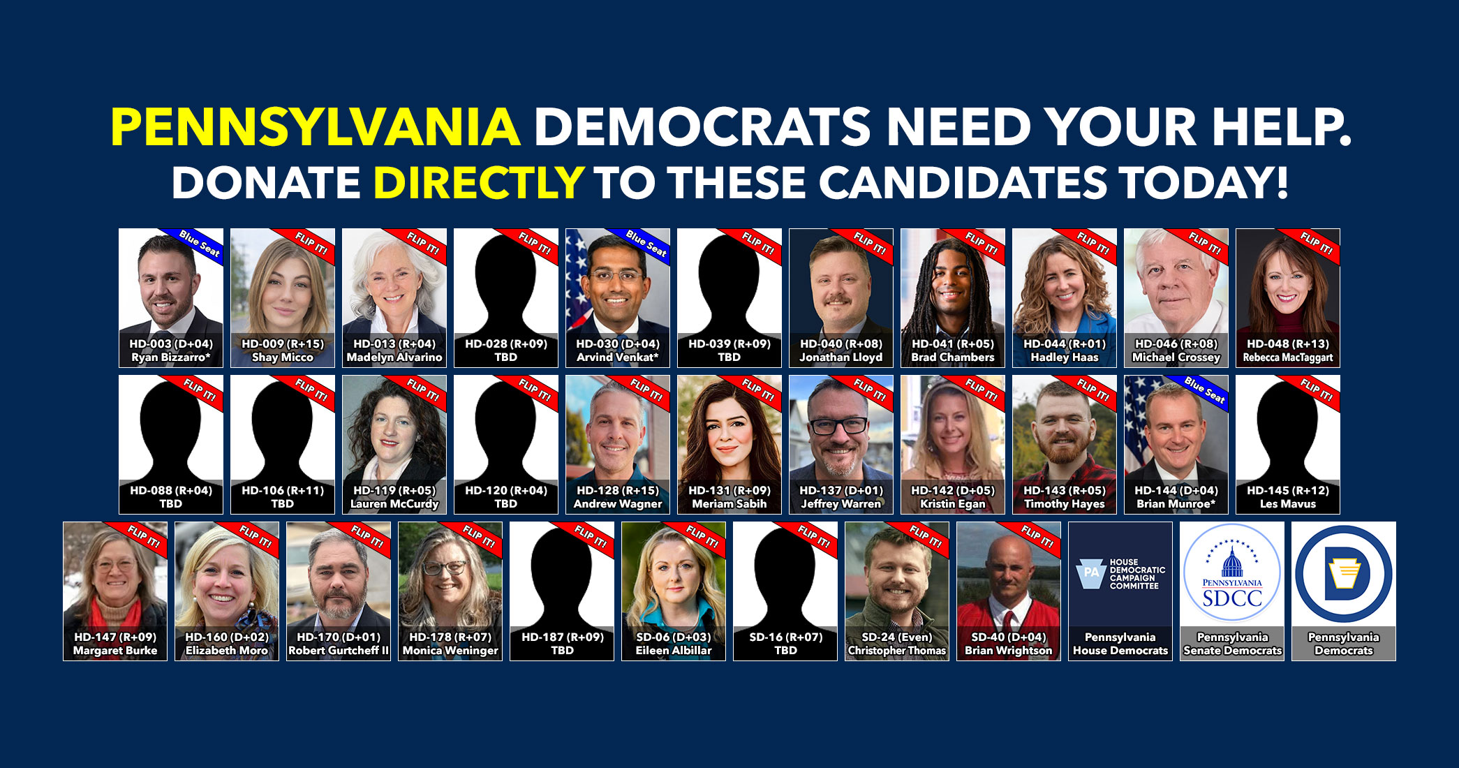 Donate to Democratic candidates running in competitive districts to keep & flip as many seats blue as possible!